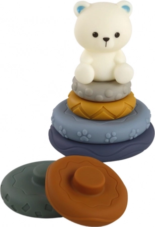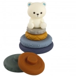 A fehér medvés színes piramis segíti a gyerekeket a szem-kéz koordináció és logikus gondolkodás fejlesztésében.