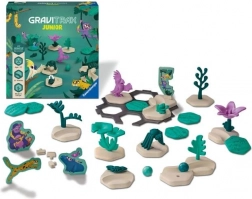 A GraviTrax Junior egy interaktív golyópálya rendszer 3 éves kortól. A legkisebbek saját, tetszés szerint díszíthető pályavilágokat építhetnek, így különféle tematikus világokat hozhatnak létre. A gyerekek rengeteg szórakozást találnak a kreatív építésben. A Dzsungel kiegészítő különféle dekorációs elemeket, valamint dzsungel környezetből származó állat- és növényfigurákat tartalmaz. Így a gyerekek a GraviTrax pályán belül maguk fedezhetik fel ezt a környezetet, és dzsungelkalandba kezdhetnek. Minden építő- és dekorációs elem faalapú bioplasztikból készült. A kiegészítő 33 építő- és dekorációs elemet tartalmaz.
