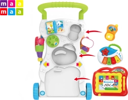 Az interaktív 2az1-ben járássegítő és játék központ a MaaMaa márkától támogatja az első lépéseket és a gyermek sokoldalú fejlődését. A széles, stabil alapnak, a csúszásgátlós kerekeknek és a színes tevékenységeknek – a színek, formák és számok tanulásától a rajzoláson, zongorázáson és telefonáláson át – köszönhetően a baba egyszerre szórakozik és fejleszti motorikáját, képzeletét és érzékelését.