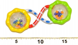 A cuki, súlyzó alakú csörgő minden kisbabának örömet szerez. A végein átlátszó golyók vannak tele színes gyöngyökkel, amelyek mozgás közben finom, megnyugtató hangot adnak. A könnyű kialakítás és a 14 × 5 cm-es kompakt méret könnyű fogást biztosít a kis kezeknek, és támogatja a finommotorika és az érzékelés fejlődését.