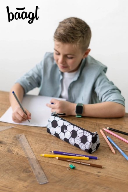 Baagl tolltartó íróeszközökre focilabda motívummal, ideális diákok számára, akik stílusos és praktikus megoldást keresnek a ceruzák és tollak tárolására.