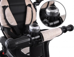 A magasságban állítható tolókar a kormánnyal összekötött a pontos irányításért. A kihajtható, hálós napellenző véd a naptól és javítja a szellőzést.