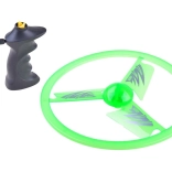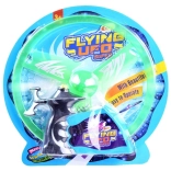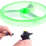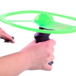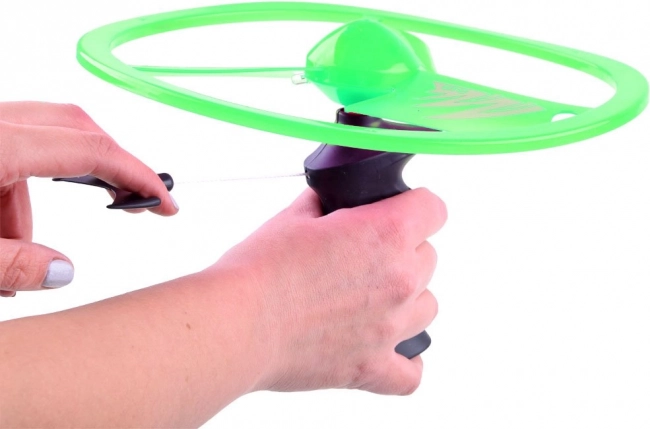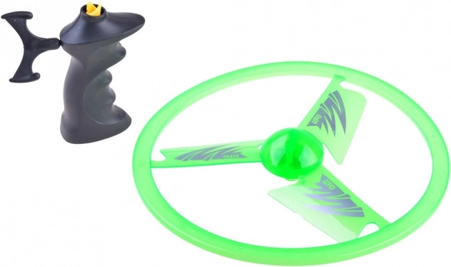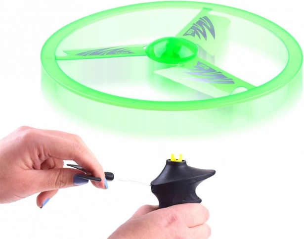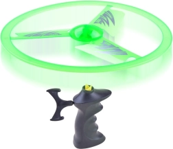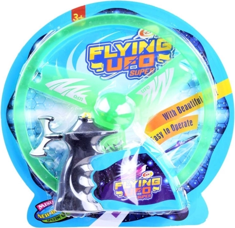 A zsinóros felhúzós mechanizmussal ellátott repülő UFO korong egyetlen húzással könnyedén felbocsátható a magasba. A beépített LED diódák repülés közben látványos fényhatásokat hoznak létre, különösen alkonyatkor és este. A könnyű műanyag stabil forgást és egyenletes repülést biztosít.