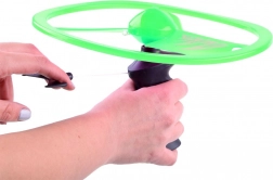 A készlet tartalma a korong és az ergonomikus fogantyú felhúzó zsinórral. Csak helyezd a korongot a tartóba, húzd meg a zsinórt és engedd el – a szórakozás garantált. A termék támogatja az aktív mozgást, a koordinációt, és szabadtéri játékra alkalmas.