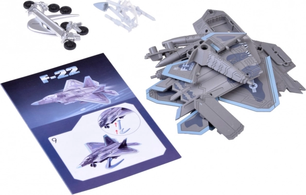 Olyan részletes építőkészlet, amely lehetővé teszi az egyik legmodernebb vadászrepülőgép modelljének összeállítását, ideális a repülés szerelmeseinek.