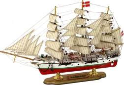 Ez a modell a „Danmark” nevű vitorláshajó. A név egy fa talapzaton van rögzítve, ami növeli az eredetiséget és segít az adott hajó azonosításában. A vitorlás csúcsán a dán zászló látható, amely kiemeli a hajó származását és kapcsolatát ezzel az országgal.
