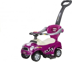 A lila Coupe tolható autó ideális az első vezetési élményekhez. A gyermek önállóan is haladhat lábbal lökdösődve, de a szülők a hosszú vezetőrúd segítségével kényelmesen irányíthatják. A masszív, mégis könnyű műanyag konstrukció biztosítja a könnyű kezelhetőséget és a hosszú élettartamot.