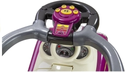 A biztonság az első: az ülés körül védőkorlátok találhatók, stabil háttámla és felhajtható lábtartók szolgálják a kényelmet. A kormány gombjai hangokat és dallamokat játszanak, melyek serkentik a fantáziát és az érzékelést. Amint a gyermek magabiztosabbá válik, a korlátok és a rúd könnyen eltávolíthatók a nagyobb szabadság érdekében.
