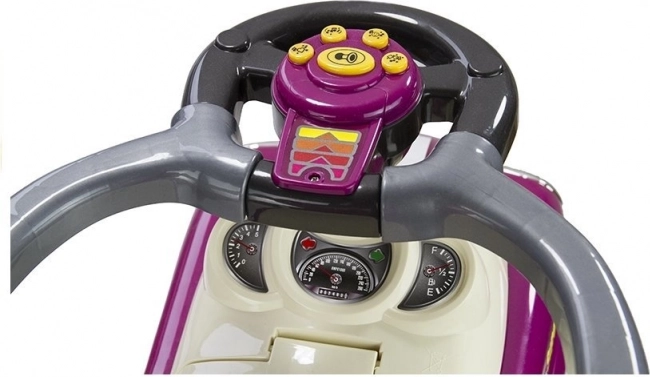 Ajándékozza meg gyermekét vidám utazással a lila tolható autóval vezetőrúddal. Ez a stabil, tolható bébijárgány ötvözi a biztonságot, a könnyű műanyag szerkezetet és a könnyű irányíthatóságot a szülők és a gyerekek számára egyaránt. A védőkorlátoknak, a lábtartóknak és a kormányon lévő zenegomboknak köszönhetően fejleszti a finom- és nagymotorikát, az analitikus gondolkodást, és támogatja az önálló játékot otthon és a szabadban is.