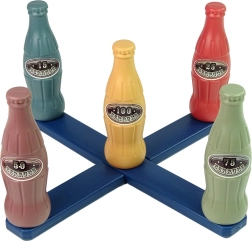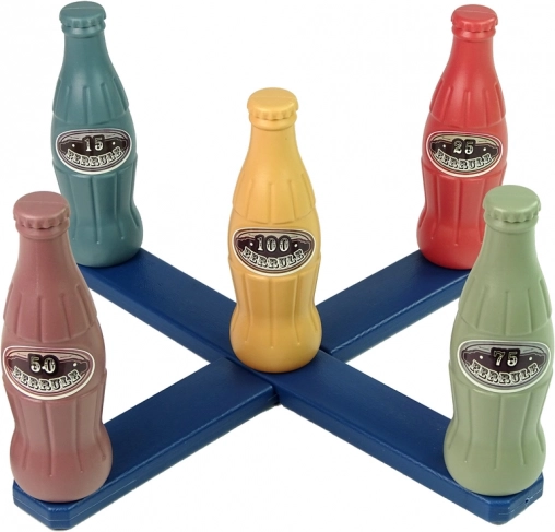 - 2 műanyag tartó (kereszttalp), 5 pontozott palack, 5 dobókarika