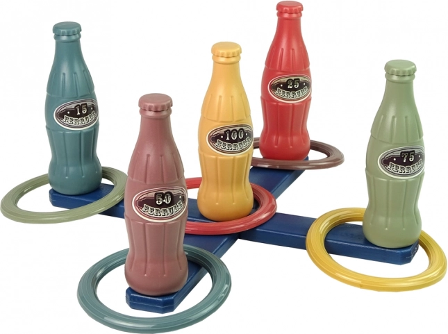 A szórakoztató palackos karikadobó játék aktív kikapcsolódást nyújt gyerekeknek és az egész családnak. Fejleszti a kéz-szem koordinációt, a pontosságot és a koncentrációt. A különböző pontértékű színes palackok egészséges versengésre ösztönöznek, és játékos formában fejlesztik a készségeket – ideális a kertbe, parkba vagy a strandra.