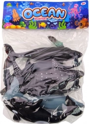 A legnagyobb tengeri állatok figurakészlete – kardszárnyú delfin, bálna, cápa (6 db)