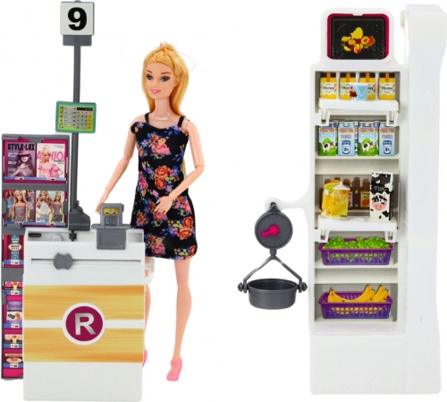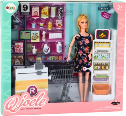 Ez a szórakoztató és oktató jellegű készlet a vásárlás világába repíti a gyerekeket. A cuki ruhás baba, az üzleti polc, a bevásárlókosár, a pénztárgép és az apró élelmiszerek változatos helyzetek eljátszását teszik lehetővé – az áru kiválasztásától egészen a pénztárnál történő fizetésig. A mozgatható végtagoknak és csuklóknak köszönhetően a baba könnyedén „megfoghatja” az árut és a kosárba teheti.