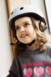 A praktikus rögzítőrendszer 48–55 cm-es állítással és az állítható állpántok pontos illeszkedést tesznek lehetővé a növekvő gyerekfejhez. Az EN-71 európai szabványnak való megfelelés megbízható védelmet garantál kerékpáron, rolleren, futóbiciklin és görkorcsolyán.
