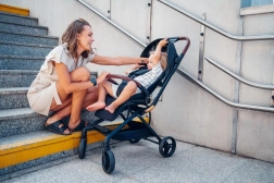 - A MoMi ADELLE babakocsi egyetlen kézmozdulattal összecsukható, összecsukva kompakt, és gyakorlatilag bárhová befér.