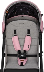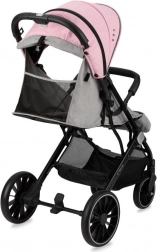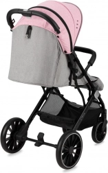 A nagy kerekeknek köszönhetően – elöl 7", hátul 10" – a MoMi ESTELLE DAKAR babakocsi terepképességeket kapott, és teljes joggal viseli a DAKAR becenevet. A szürke-rózsaszín változat ideális lesz kirándulásokhoz a kis hercegnőddel.