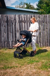 A MoMi Estelle DAKAR a legnépszerűbb MoMi ESTELLE babakocsi terepváltozata. Ugyanolyan könnyen manőverezhető, kompakt és könnyű, mégis van benne valami, amitől egyedülálló – a nagy kerekek, amelyek a legnehezebb terepen is jól teljesítenek. Emellett rendelkezik egy nélkülözhetetlen fogantyúval az összecsukott babakocsi húzásához.
