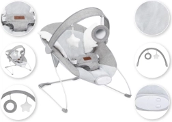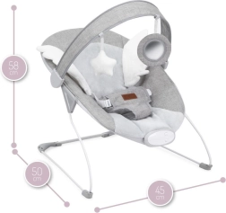 A nyugágy szenzoros egységet tartalmaz akár 8 dallammal és 3 szintű vibrációval, amelyek harmonikusan kiegészítik a ringatást a gyermek mozgása szerint.