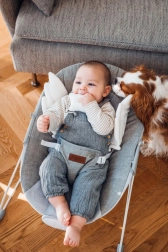 A bársonyos szárnyaknak köszönhetően a nyugágy könnyedén alkalmazkodik a gyermek mozgásaihoz, ezáltal természetes és megnyugtató mozgást hozva létre. A szülők értékelik majd a megfontolt kivitelezését, amely praktikus a gyönyörű fényképek elkészítéséhez is a kis angyalukkal.