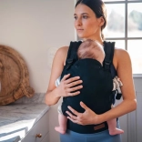A széles deréköv és a puhán párnázott vállpántok egyenletesen oszlatják el a gyermek súlyát. A csatok fedései növelik a kényelmet még hosszabb hordozás során is.