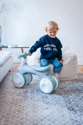 MoMi TOBIS ideális futóbicikli a legkisebbek számára, ami szórakozást nyújt és fejleszti a motoros készségeket. Ez az okos háztartási kiegészítő egyedi funkciókat kínál, mint például buborékos szórakozás, színes fény és kürt.