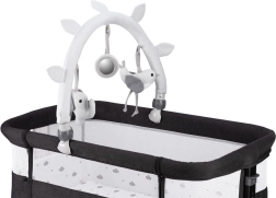 - A kiságy szett része a játékhíd függő játékokkal, amely jelentősen támogatja a gyermeked érzékszervi fejlődését. Segítsd a fejlődését, és ismertesd meg vele az új formákat és színeket a különböző játékok révén.
