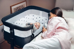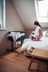 - A hatlépcsős beállítással a kiságyat a megfelelő magasságba állíthatod, így a babád közel marad, te pedig kényelmes helyzetben lehetsz.