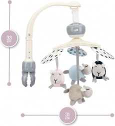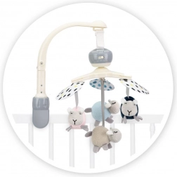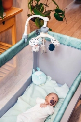 Hat lágy dallam, köztük fehér zaj segíti a babát a megnyugvásban és a könnyebb elalvásban, miközben a lassú forgás támogatja a figyelem fenntartását.