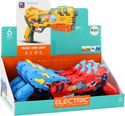 Szórakoztató, dinoszaurusz formájú gyerekpisztoly, amely dinoszauruszok képeit vetíti, és fényhatásokkal valamint realisztikus hangokkal rendelkezik. A ravasz meghúzásakor a megvilágított kerekek forogni kezdenek, a pisztoly „életre kel”, és a falon megjelenik a dinoszaurusz vetítése. Remek játék a kreativitás és a finommotorika fejlesztésére. Két színben elérhető – kék és piros.