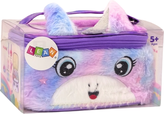 Bűvöld el a kis parádésokat ezzel a bájos kozmetikai szettel, plüss unikornisos táskában. Belül találnak körömlakkot, szemhéjpúdert, rúzsokat, szájfényt gyűrűben és ujjelválasztót – mindent a biztonságos és kreatív játékhoz. A puha, pasztellszínű táska praktikus, hordozható, és fejleszti a képzeletet és a finommotorikát.