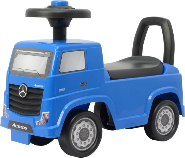 A kék MERCEDES Actros lábbal hajtós jármű ideális azoknak a gyerekeknek, akik már önállóan tudnak a lábukkal hajtani. Alacsony tömege megkönnyíti a kezelést a szülők és a gyerekek számára, a masszív felépítés pedig biztonságos haladást nyújt sima felületen otthon, az udvaron vagy a kertben. A részletekre – felnikre, fényszórókra és hűtőmaszkra – helyezett hangsúly valósághű teherautó-megjelenést teremt.