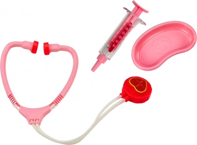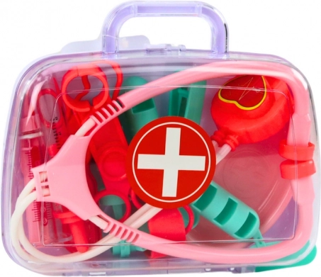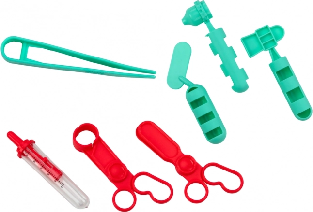 A készlet egy praktikus műanyag bőröndben kapott helyet a könnyű tárolás és szállítás érdekében, és egyben autentikus élményt ad, amely arra ösztönzi a gyerekeket, hogy bárhol orvososdit játszanak.