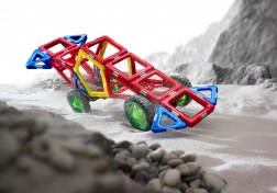 A készlet 36 darabból áll, amelyek segítségével a gyerekek végtelen számú járműkombinációt alkothatnak. Játék közben természetes módon fejlődik a térbeli képzelet, a finommotorika, a koncentráció és a kreativitás. Minden GEOSMART szett kiválóan illeszkedik egymáshoz, így a gyűjtemény fokozatosan bővíthető.