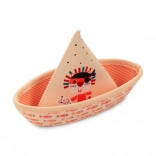 Fordítsd meg a csónakot, töltsd meg vízzel, és figyeld, ahogy finoman spriccel a vitorla nyílásain keresztül – tökéletes érzékszervi játék a fürdőben.