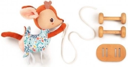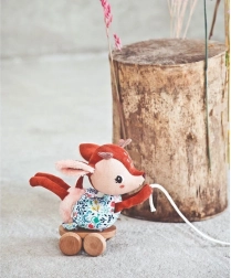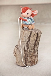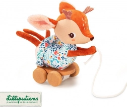 A belga Lilliputiens márkájú plüss húzható játék Szarvas Stella ideális társ gyermeked első lépéseihez. Ez a játék barna-rózsaszín színű, virágos ruhás Stella szarvas formájában készült és fa talapzatra van helyezve, kerekekkel. Segít fejleszteni a motoros képességeket és biztonságos a kicsik számára.