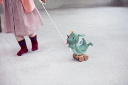 A Sárkány Joe nagyszerű húzós játék, amely támogatja a gyerekek motoros képességeit. A fa kerekek simán kidolgozottak, így biztosítva, hogy ne karcolják meg a padlót. A játékot biztonságra tervezték, amit az EN71, CE, ASTM, ISO 9001 tanúsítvány is igazol. Ezeken a specifikációkon kívül a textil rész könnyen levehető és 30 °C-ig mosható.