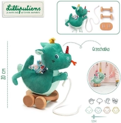 A játék része egy puha zsinór a húzáshoz, amely elég hosszú a kényelmes használathoz. A szórakoztató sárkány design virágos szárnyakkal és bájos részletekkel örömet okoz nemcsak a gyerekeknek, de a szülőknek is. Kapcsolható más játékokhoz azonos kollekcióból, így bővíthető a játékélmény.