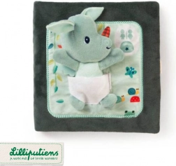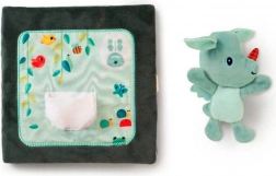 Textil könyvecske mini plüssfigurával Puk, puk – JOE, a kis sárkány a LILLIPUTIENS-től, 18 hó+