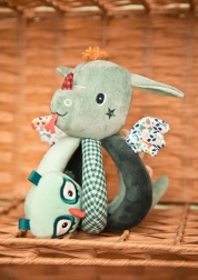 A Lilliputiens Joe sárkány formájú, aranyos csörgő és fogó játék 6 hónapos kortól örömet szerez a babáknak. Különféle textúrákat, susogást és csilingelő csörgőket kínál az érzékelés serkentésére és a finommotorika fejlesztésére. Puha hurkáinak köszönhetően könnyen megfogható, ösztönzi a bedugást és kihúzást, valamint segít megérteni az ok–okozat összefüggését. A játék puha, biztonságos, és gépben mosható.