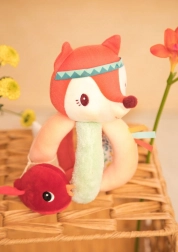 Ez az egyedi Alice róka csörgő már újszülött kortól örömet szerez. Átgondolt formájának köszönhetően a kis kezek könnyen megfogják, és felfedezik a különféle tapintási ingereket – puha plüss, susogó részek és a rejtett madárka. A beépített csengő finom hangja felkelti a figyelmet és támogatja az észlelést.