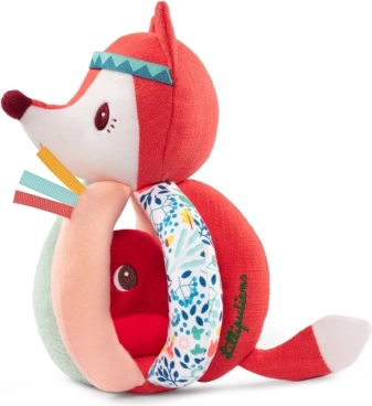 Aranyos babacsörgő a Lilliputiens márkától Alice róka formájában, aki egy kis piros madárkára vigyáz. Változatos textúrákat, csengőt, susogó papírt és rejtett meglepetést kínál az érzékelés fejlesztéséhez. Kis kezekkel is könnyen megfogható, puhácska és 30 °C-on mosható.