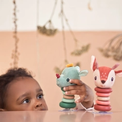 Stella szarvasa hihetetlenül szórakoztató játék, amely a legkisebb érintésre is megmozdul. Textil feje és tanúsított fa karikái garantálják a biztonságot és a minőséget. 6 hónapos kortól ajánlott, így tökéletes társ az apróságoknak.
