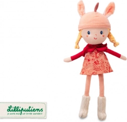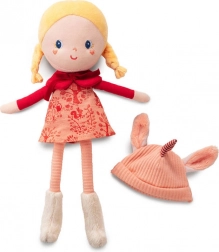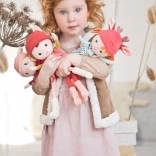 Lena baba 30 cm magas, kellemesen puha textíliákból készült, amelyek ölelésre hívnak. Két szőke copfja, hímzett szeme, orra és mosolya garantálja, hogy a játék biztonságos és tartós a legkisebbek számára is. A stílust erdei mintás ruha, meleg sál és levehető sapka fülecskékkel és szarvval egészíti ki – játékos utalás Lenára, az unikornisra.