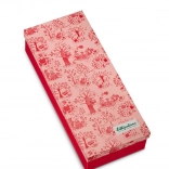 Masszív, díszes doboz, amelynek mintája a baba ruhájához illeszkedik – szép csomagolás és praktikus tároló egyben.