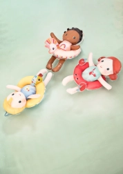 A Lilliputiens fürdőbaba Gaspard kiskacsával a fürdést vidám kalanddá varázsolja. A 18 cm-es baba úgy készült, hogy a kicsik számára biztonságos, puha és könnyen megfogható legyen. A kiskacsa alakú úszógumi támogatja a fantáziát és az érzékszervi fejlődést a vízi játék során.