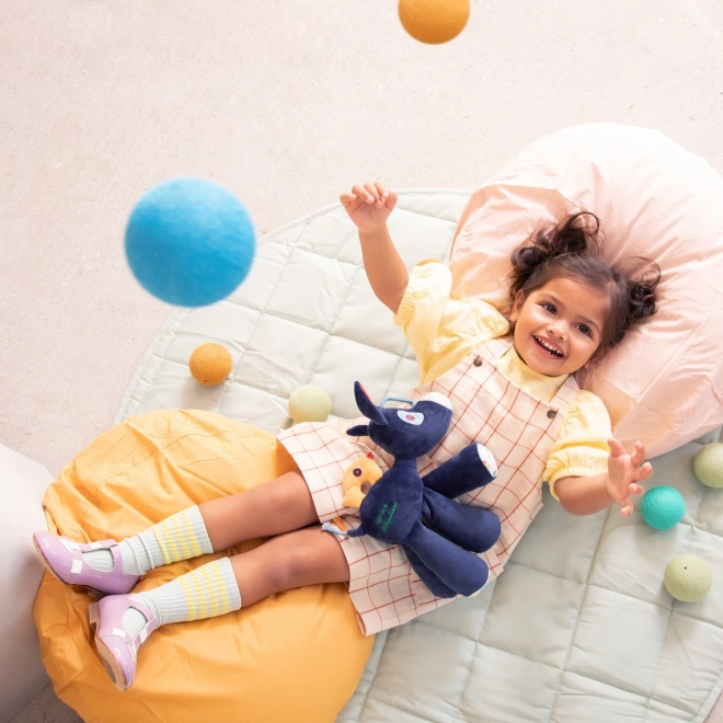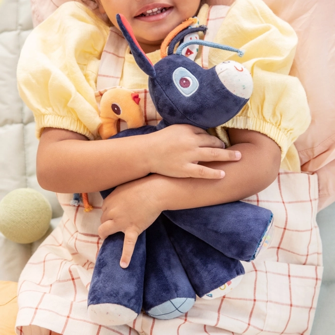 Ismerkedjen meg azzal a plüss baráttal, aki egyszerre szórakoztat és megnyugtat. IGNÁC, a szamár pihe-puha, színvilága ösztönző, és a test különböző részeinek megnyomására öt hangot játszik le, köztük az autentikus iázást is. Fejleszti a hallást, a finommotorikát és a kíváncsiságot.
