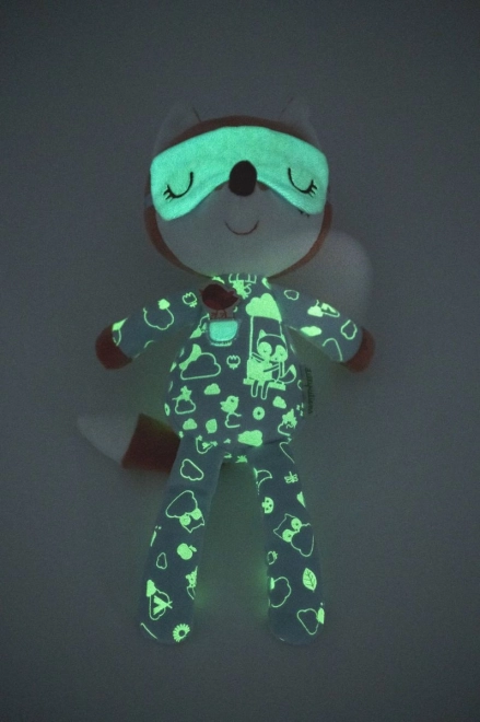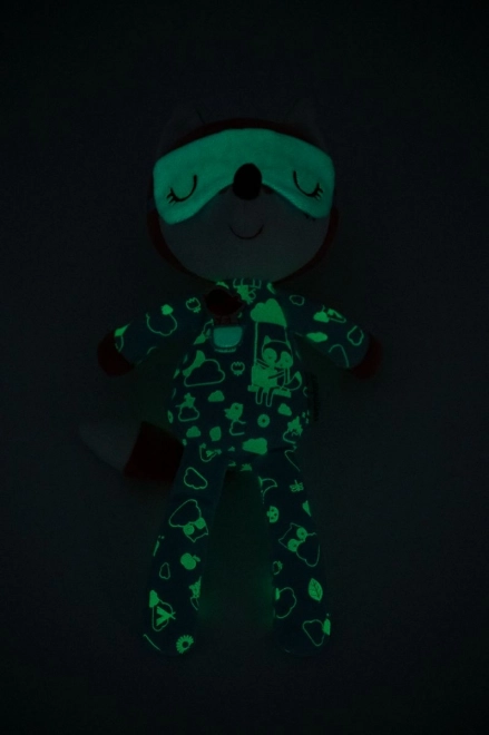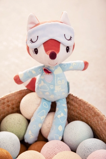 Aranyos plüss alvótárs babáknak és kisgyermekeknek. Alice, a róka világító pizsamával és alvómaszkkal rendelkezik, amelyek fény hatására a sötétben finoman derengenek. A megnyugtató fény segít a gyerekeknek elaludni és biztonságban érezni magukat. A játék mosógépben mosható 30 °C-on, kímélő programon. Mérete kb. 19 × 10,5 × 30 cm.