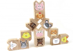 A játék minden egyes rakosgatható állatkája különböző formákkal és méretekkel segíti a gyermekek finommotorikájának fejlesztését.