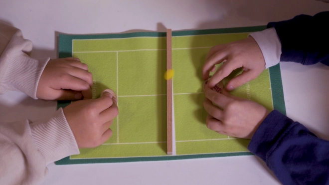 Az Ugrás! Tenisz játék nagyszerű szórakozás az egész család számára. Először állítsd fel a pályát, és állítsd be a meccs idejét minimum 3 percre. A játékos feladata, hogy a sárga korongot az ellenfél térfelére juttassa, miközben elkerüli a hálót. A játék nagyon szórakoztató és fejleszti a stratégiai gondolkodást.