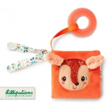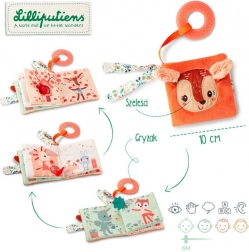A Lilliputiens márka Stella kollekciójának első puha babakönyve bájos őzike arcú, finom plüss borítót, zizegő oldalakat, különböző textúrákat és texturált rágókát kombinál a fogzás alatti megkönnyebbülésért. Támogatja az érzékszervi fejlődést, a finommotorikát és a képzeletet, a tépőzáras hurknak köszönhetően könnyen a babakocsira erősíthető, és ideális ajándék 6 hónapos kortól.